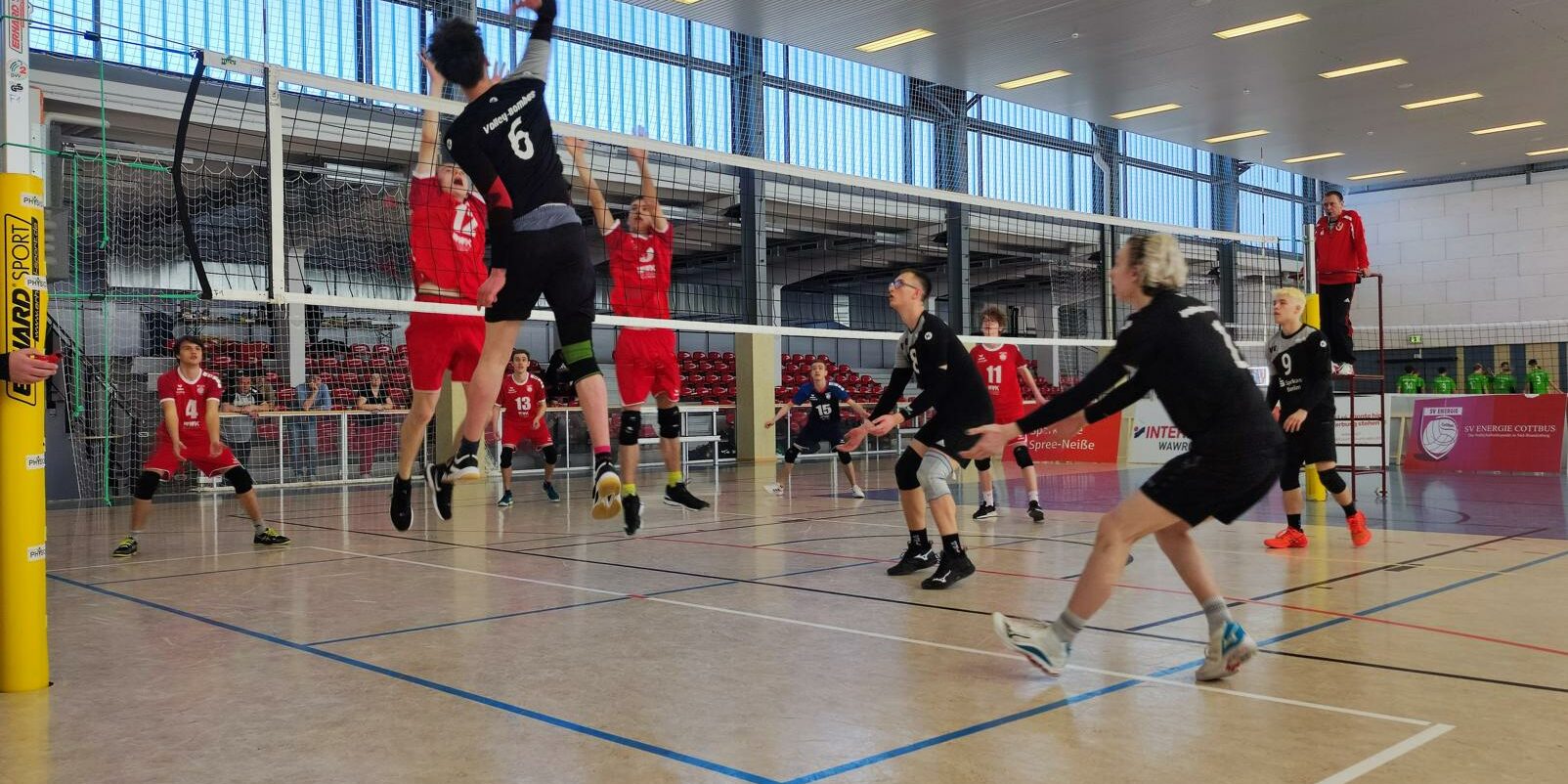 Im zweiten Spiel stand den Jungs eine deutlich besser organisierte Mannschaft gegenüber. Die Gastgeber kombinierten sich mit einstudierten Spielzügen durch den ersten Satz, waren den Bombas immer einen Schritt voraus und beendeten den ersten Satz mit 25:15 zu ihrem Gunsten. Eine kleine Umstellung und eine deutlich verbesserte Spielkontrolle sorgte im zweiten Satz für eine Überraschung. Eine starke Feldabwehr konnte zunächst auch in komplette Spielzüge und infolgedessen zu Angriffszügen vollendet werden und zudem eine gewisse Nervosität beim Gegner hervorrufen, sodass der zweite Satz unerwartet deutlich mit 25:14 an die Volley-Bombas ging. Im Entscheidungssatz behielten unsere Jungen zunächst ihr druckvolles Spiel bei und wechselten auch in Führung liegend die Seiten. Nach dem Seitenwechsel sorgte eine Aufschlagserie der Cottbuser dann aber doch dafür, dass die Bombas ins Hintertreffen gerieten. Nach der Abwehr von zwei Matchbällen musste sich unser Team jedoch mit 15:12 geschlagen geben.